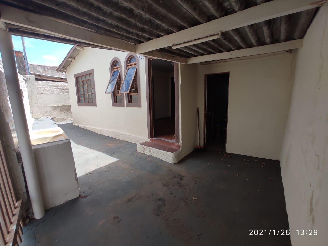 Terreno com casa, sendo telhado de eternit, sem forro:2 quartos;Banheiro social;SalaCozinhaNos fundos possui uma edícula sem banheiro