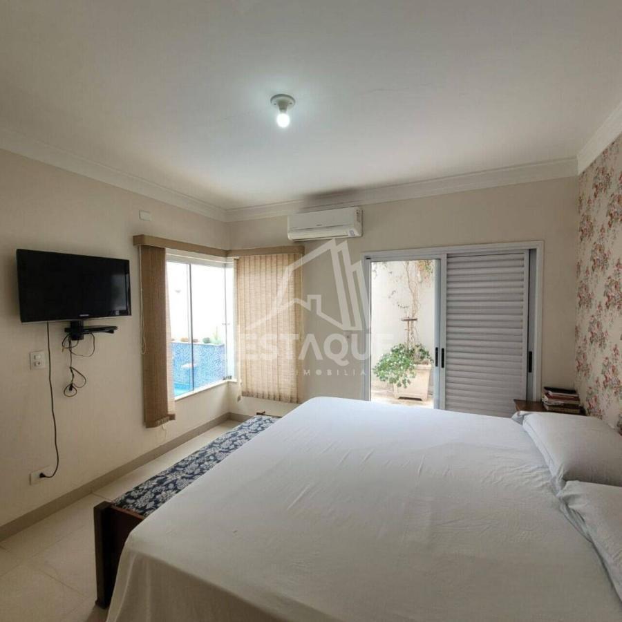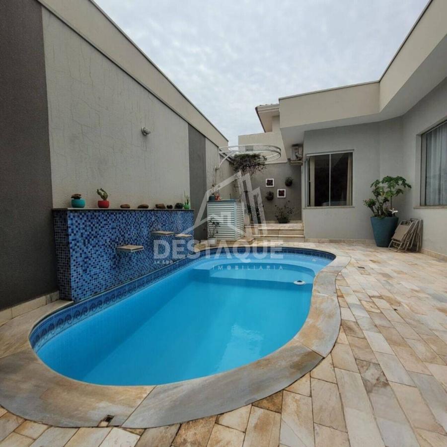 Esta linda casa, conta com 212 m² e é composta por 3 amplas suítes, sendo uma máster com closet, corredor de circulação com closet, escritório sofisticado, lavabo, amplas e aconchegantes salas de estar e jantar integradas com pé direito duplo, sala de TV/Living, cozinha planejada, varanda gourmet com pia, churrasqueira e forno à lenha, piscina aquecida com hidromassagem e cascata, banheiro externo, área de serviço e 2 espaçosas vagas de garagem.