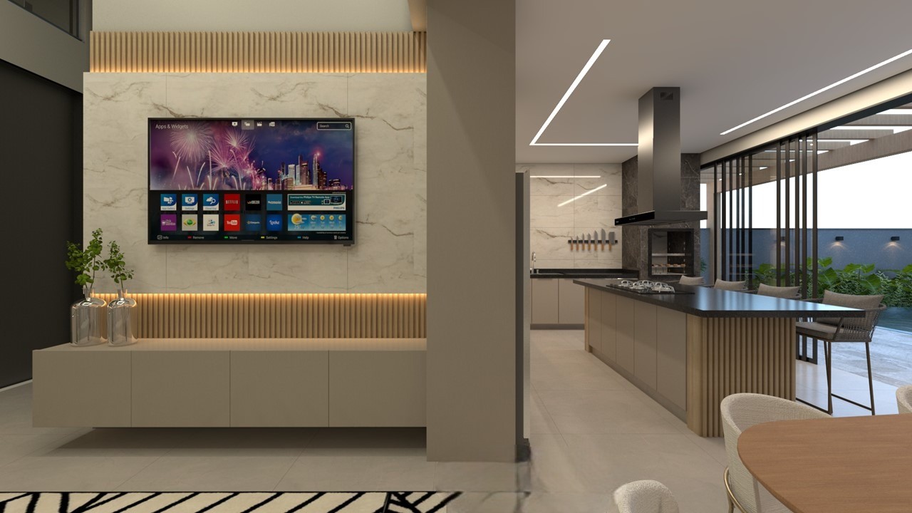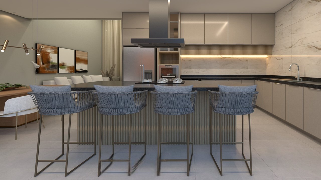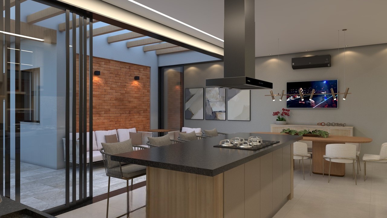 Sala de jantar integrada com a cozinha Gourmet