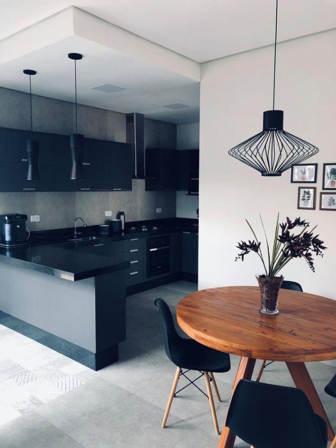 Cozinha planejada com cooktop, forno embutido e coifa