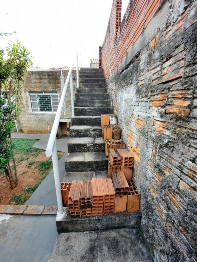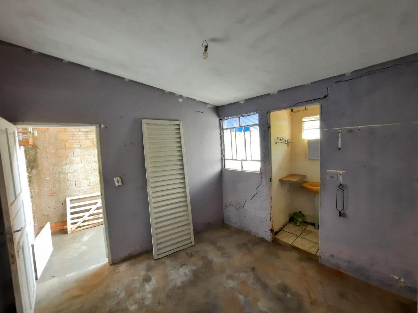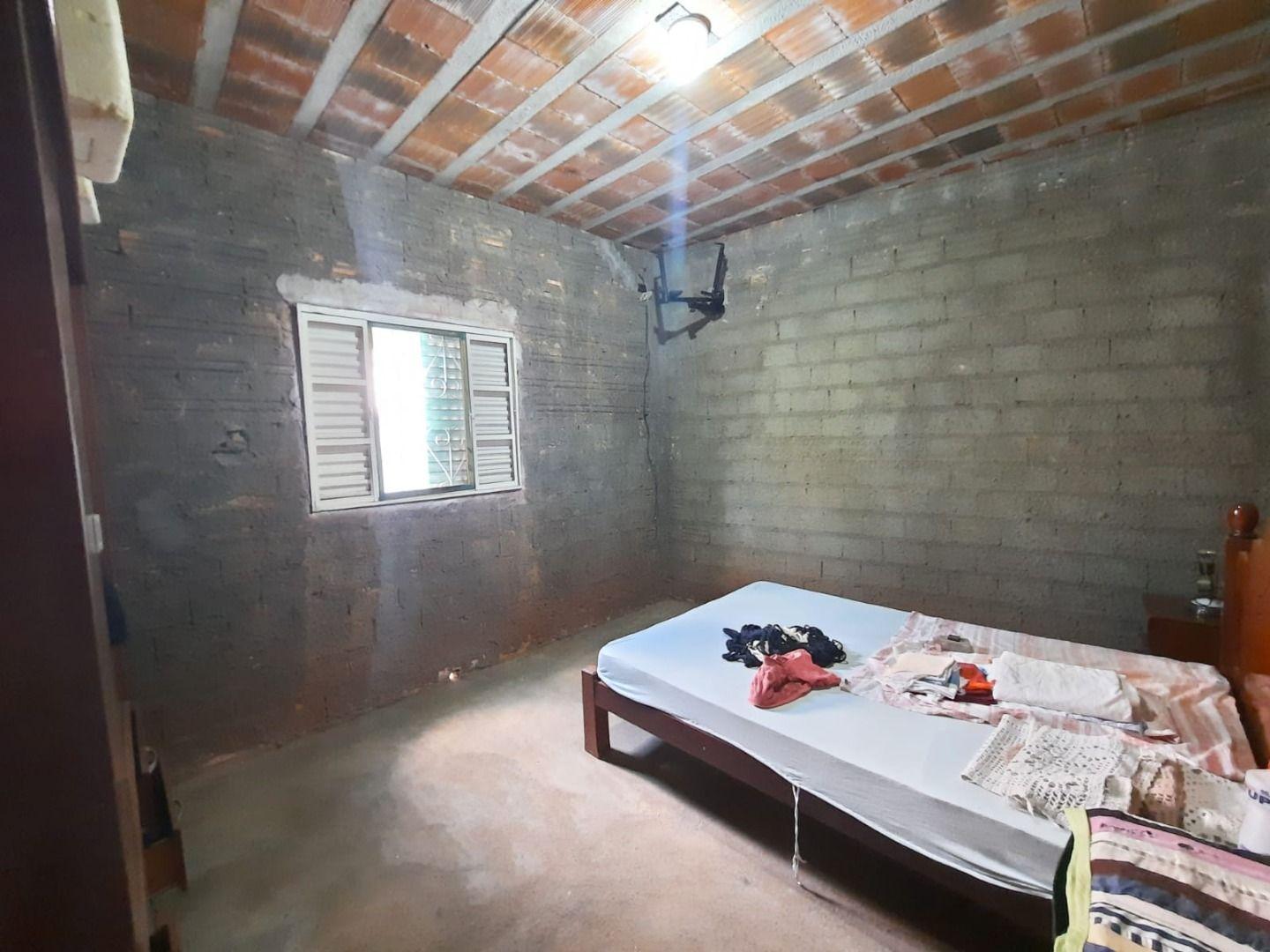 Terreno com casa, sendo telhado de eternit, sem forro:2 quartos;Banheiro social;SalaCozinhaNos fundos possui uma edícula sem banheiro