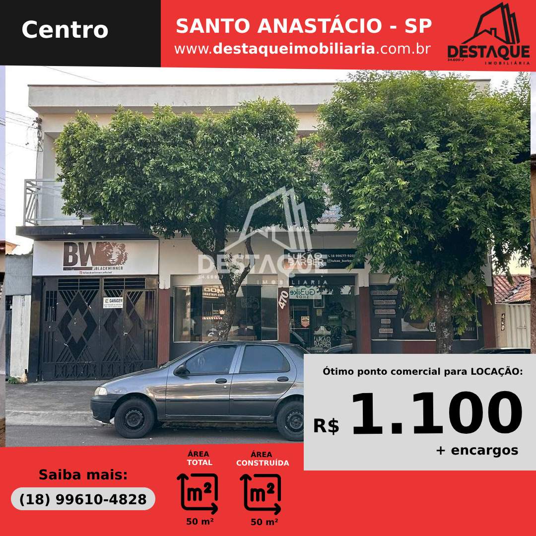 Ponto Comercial para Locação no bairro Centro, localizado na cidade de Santo Anastácio / SP.