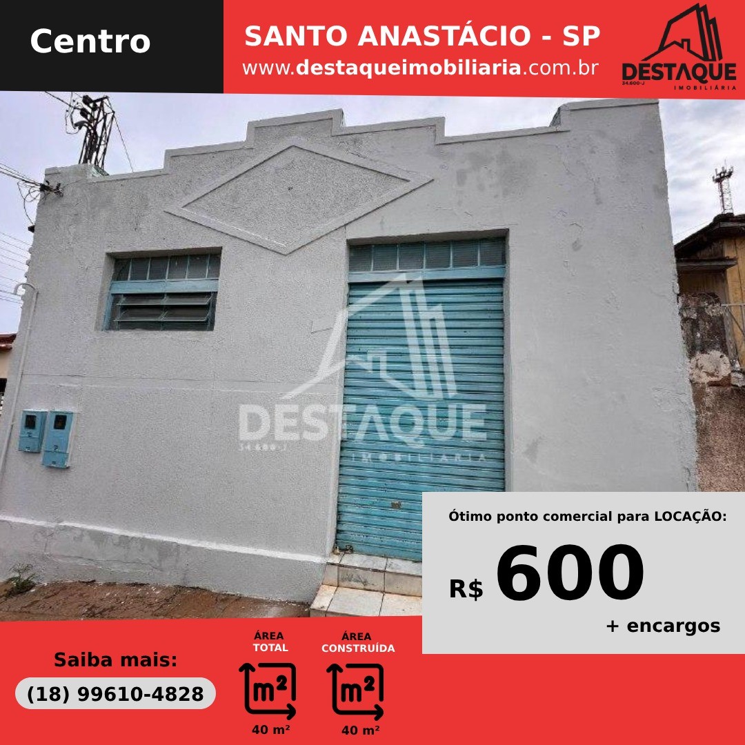 Ponto Comercial para Locação no bairro Centro, localizado na cidade de Santo Anastácio / SP.