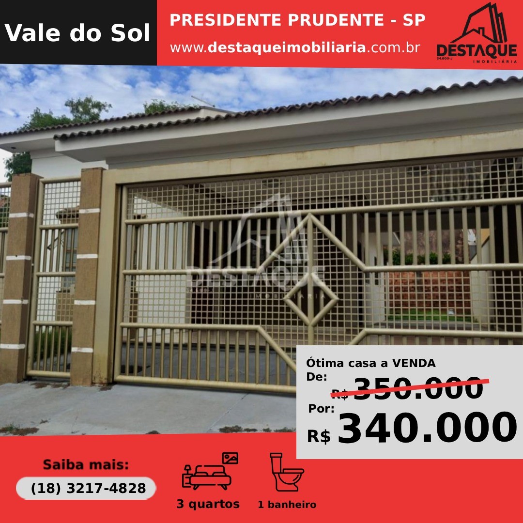 Ref: CA8974, bairro Vale do Sol, 3 dormitórios, 1 banheiro, 2 vagas de garagem, área total 252,00 m², área construída 107,00 m²Compartilhar: